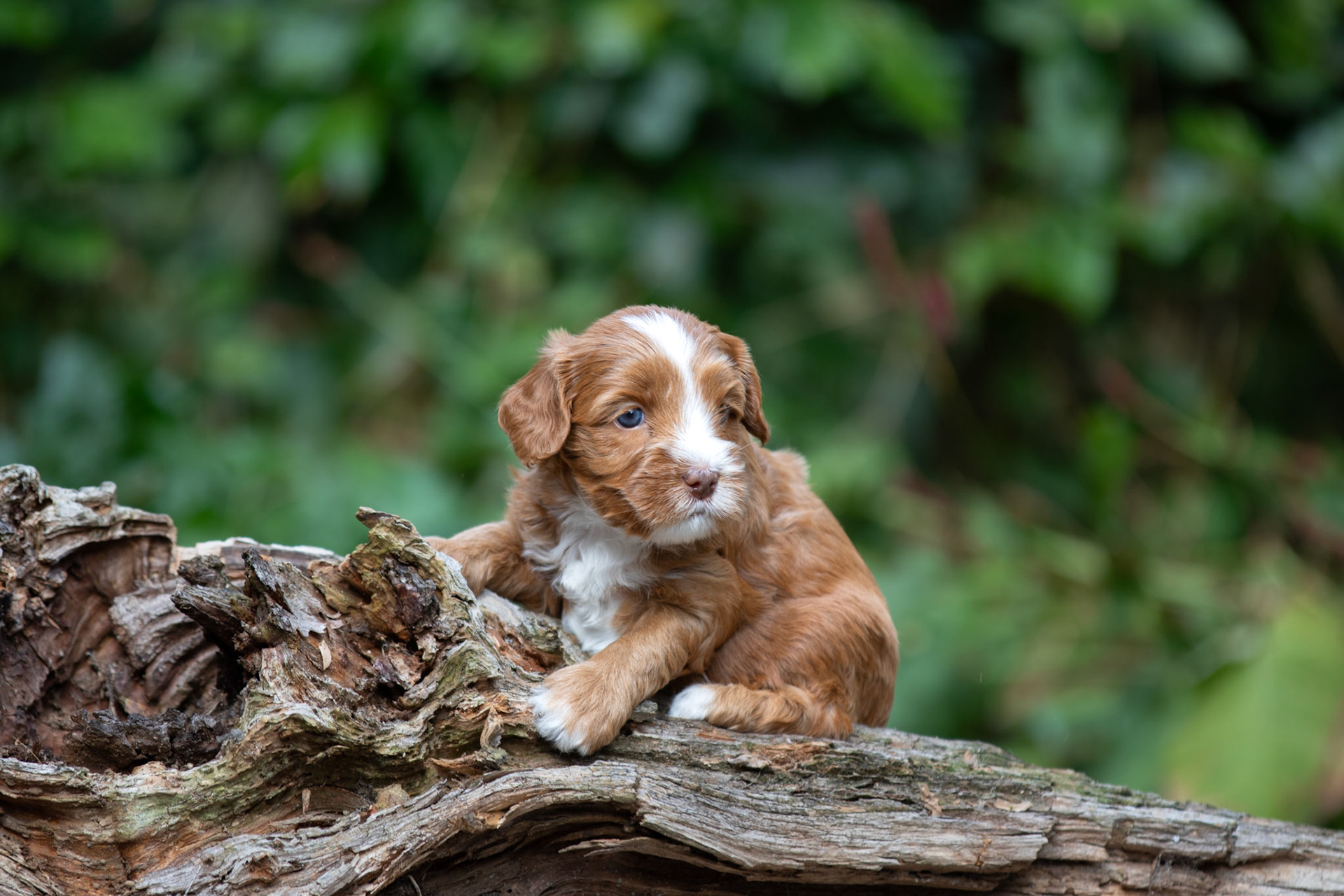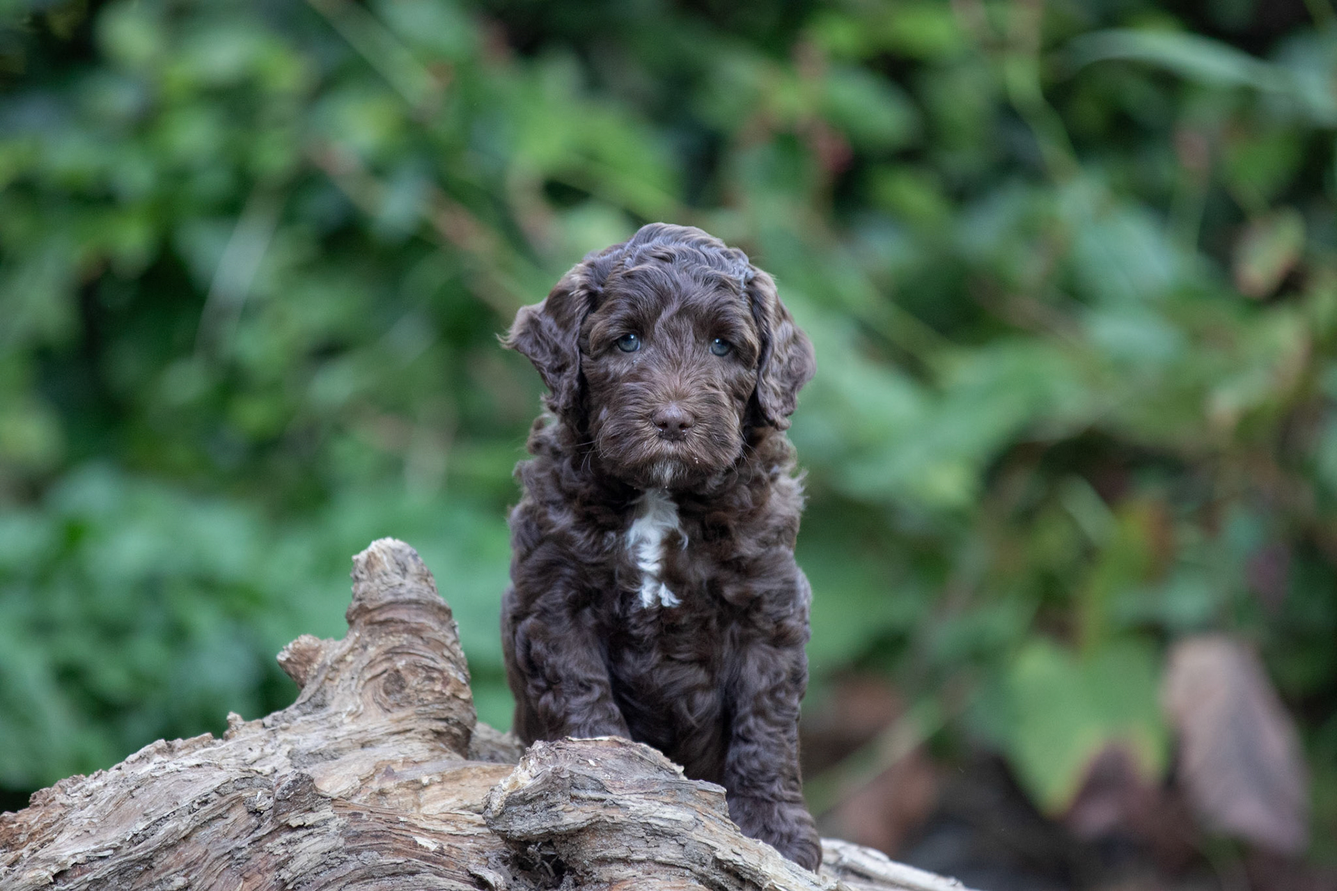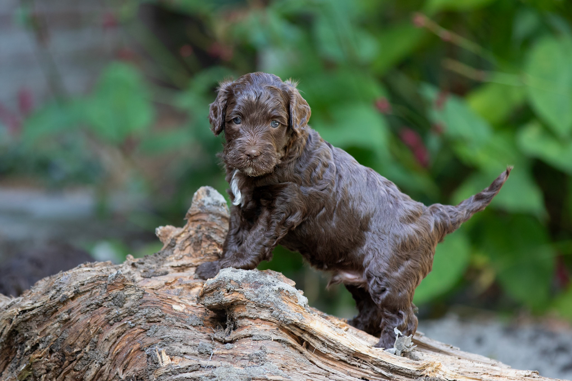 De pupjes worden steeds beweeglijker en dus wordt het stilzitten voor foto's moeilijker. Maar ze hebben allemaal toch weer mooi geposeerd op een stuk hout! Verder nog een leuk filmpje waarop lekker gestoeid wordt en een foto van mama Bella die een frisse ochtendduik neemt in het park.