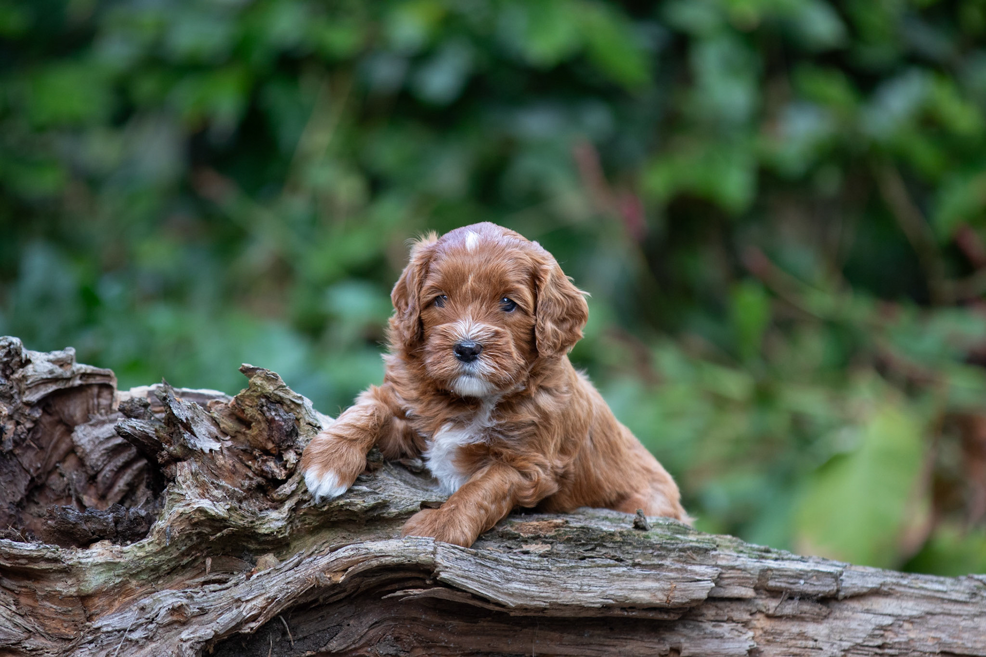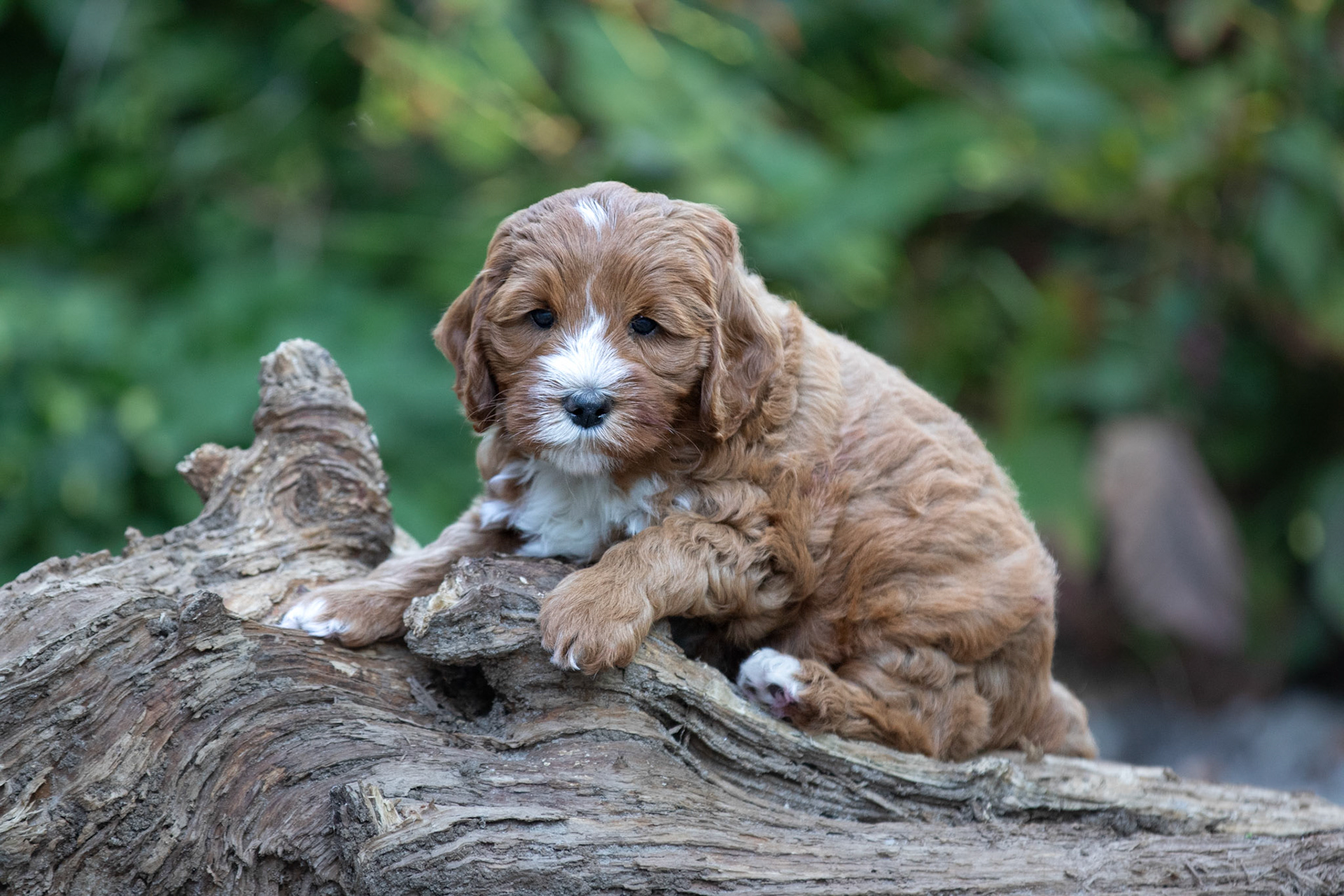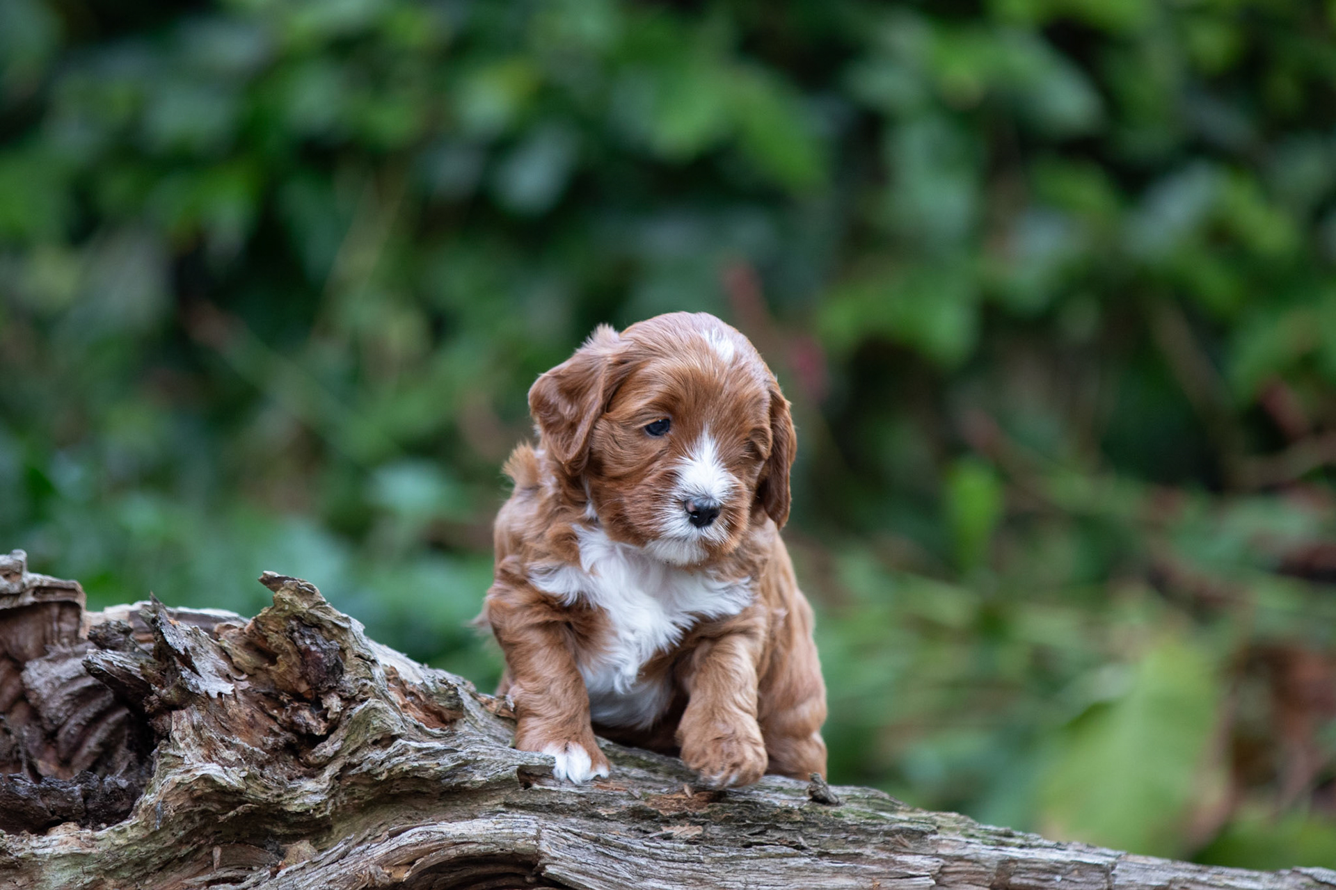 De pupjes worden steeds beweeglijker en dus wordt het stilzitten voor foto's moeilijker. Maar ze hebben allemaal toch weer mooi geposeerd op een stuk hout! Verder nog een leuk filmpje waarop lekker gestoeid wordt en een foto van mama Bella die een frisse ochtendduik neemt in het park.