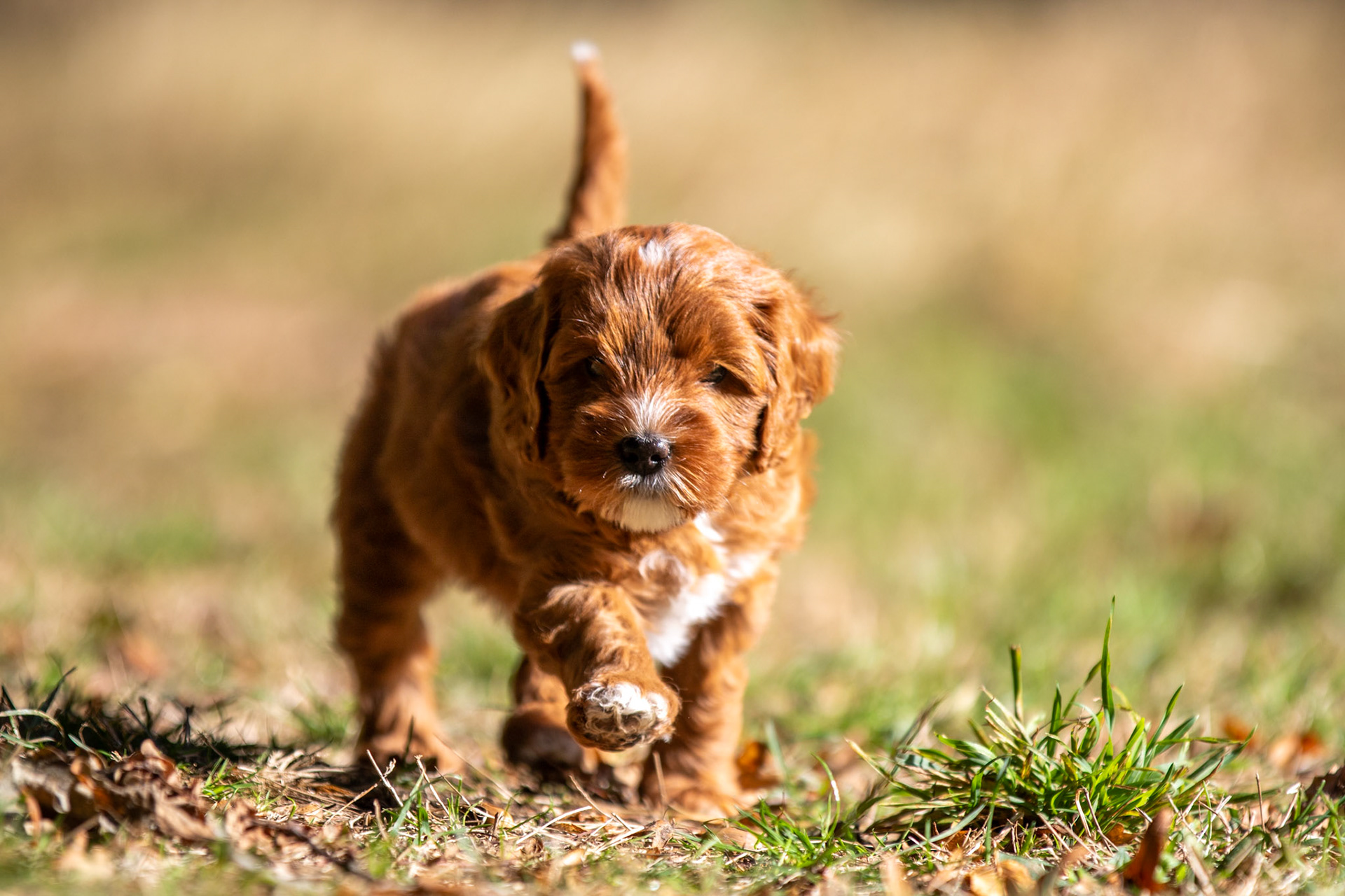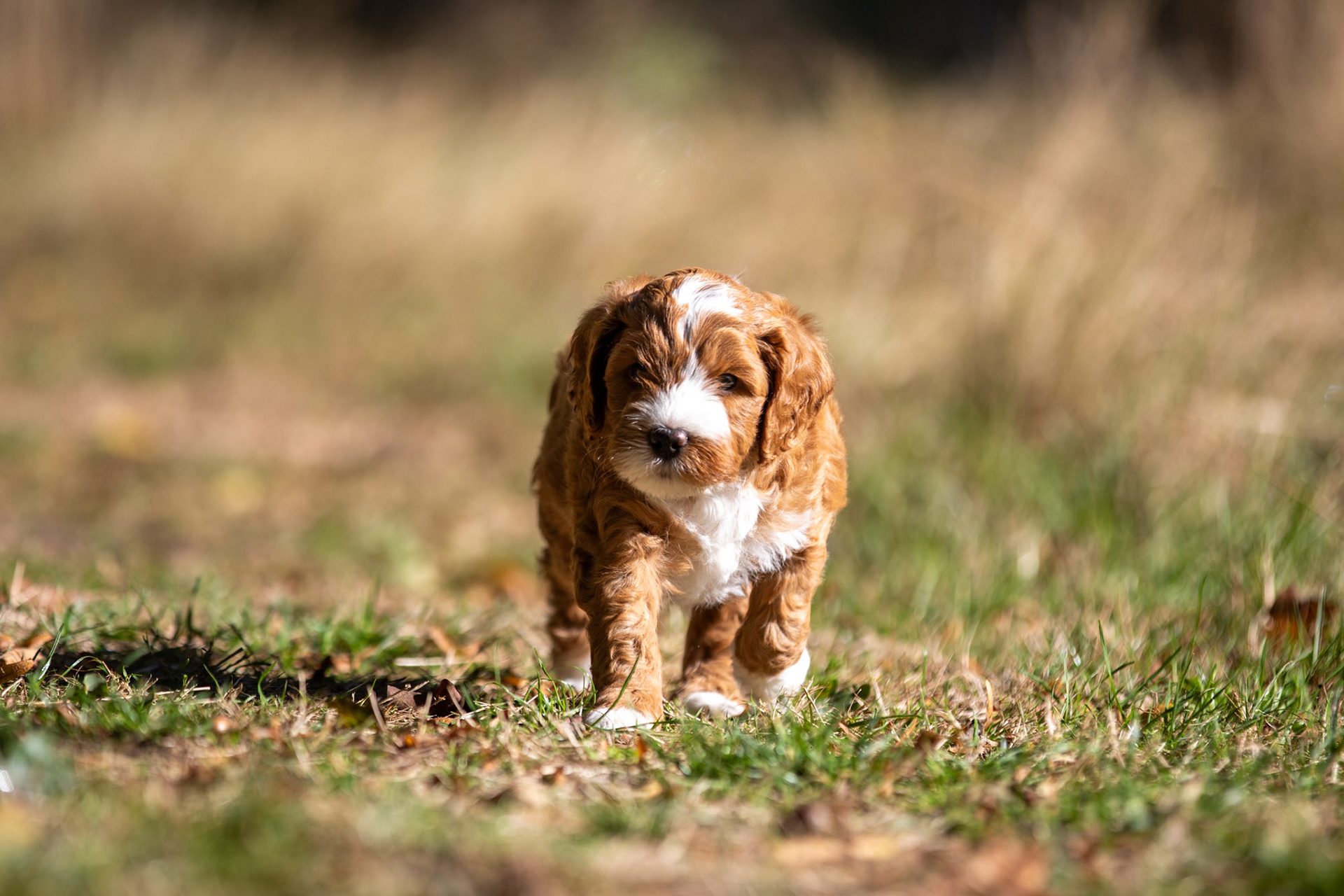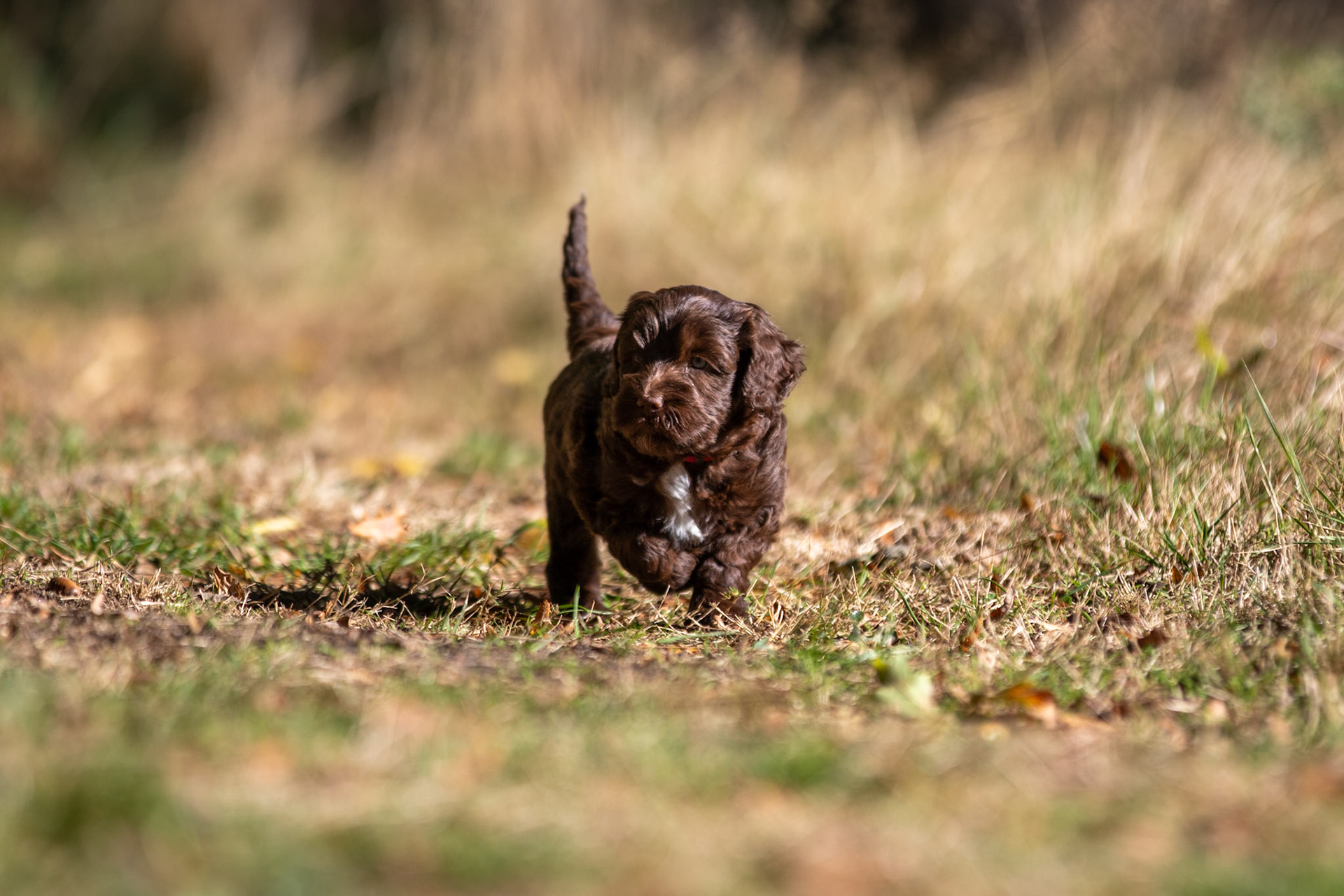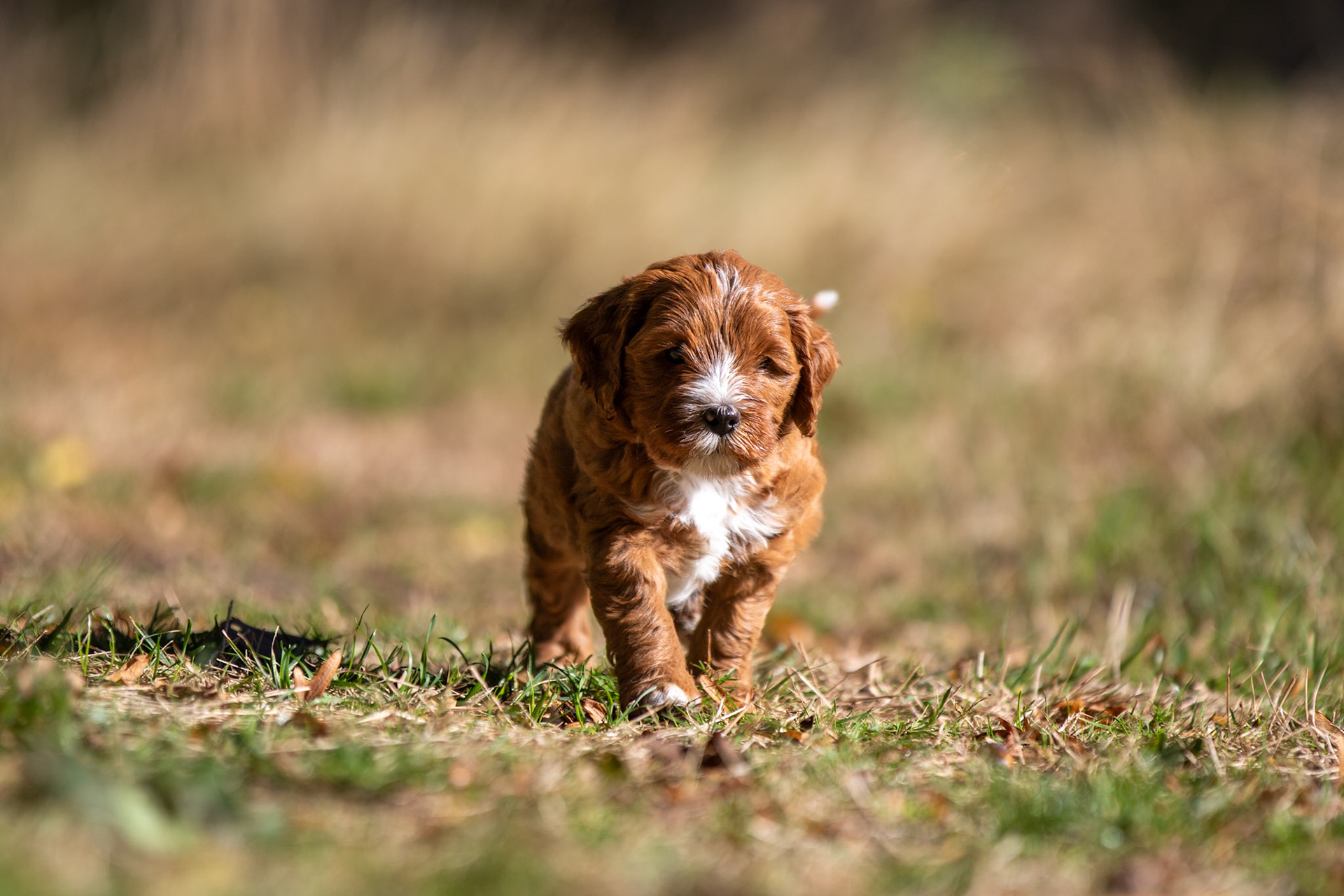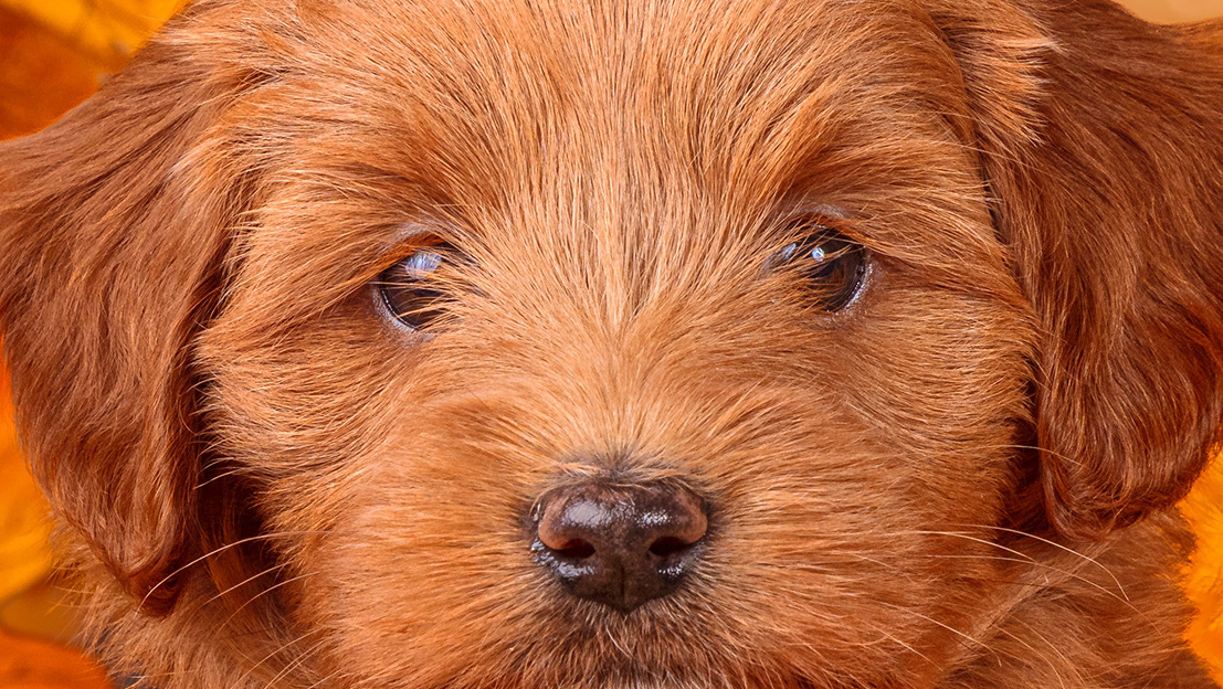 De oogjes gaan open! Het was even afwachten wat precies de kleuren van de pups met de rode vacht waren, maar nu is het duidelijk want de neusjes hebben pigment gekregen. De drie reutjes hebben een zwarte neus en zijn dus rood, het teefje heeft een bruine neus dus zij is caramel.
