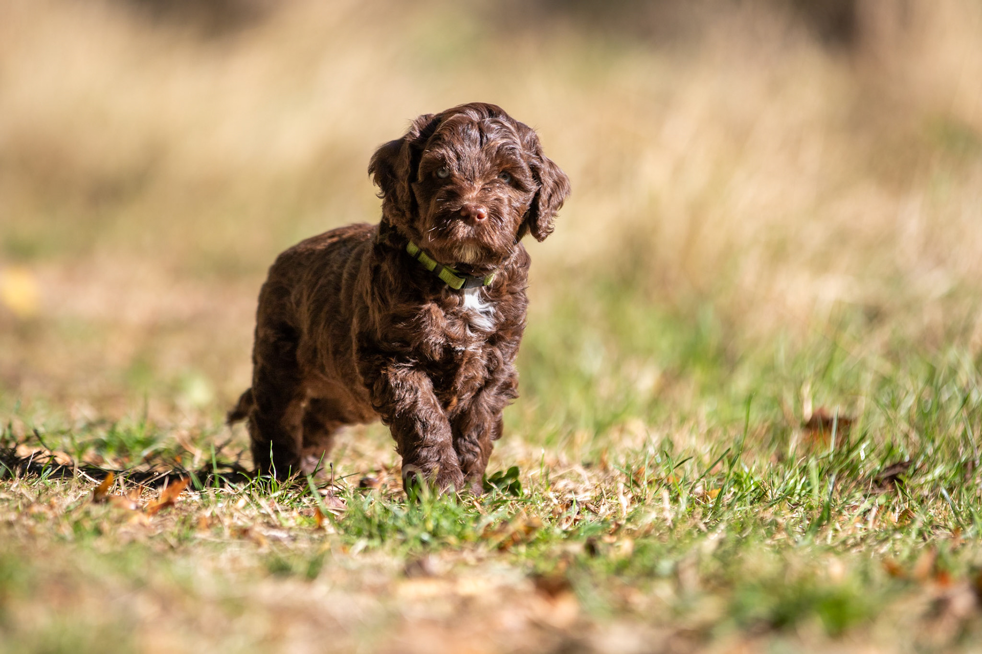 bruin reutje met groen bandje