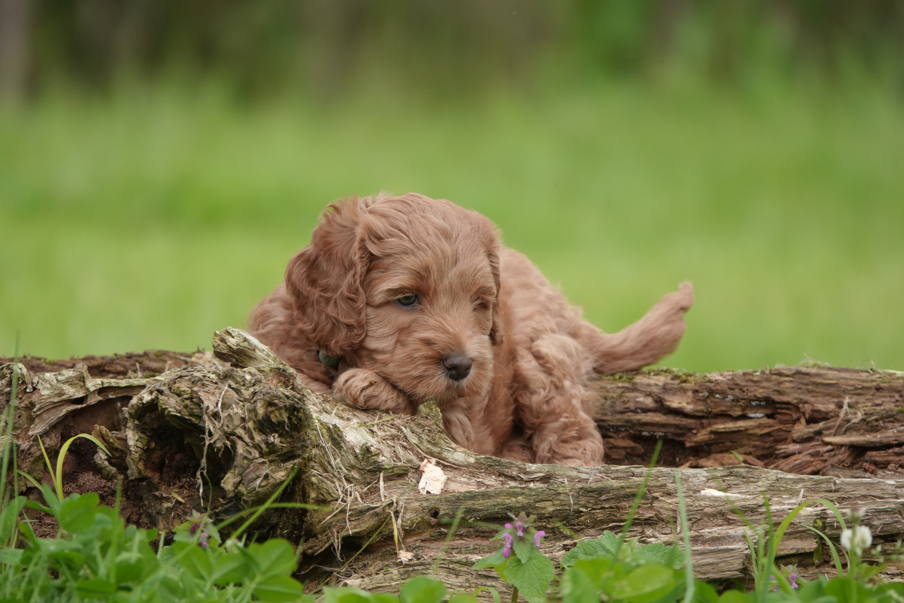 De pups van Lola zijn zo verschillend qua uiterlijk. Maar wat ze gemeen hebben is dat ze allemaal erg goede fotomodellen zijn. Ze hebben weer goed hun best gedaan om mooi te poseren, ditmaal op een boomstam.