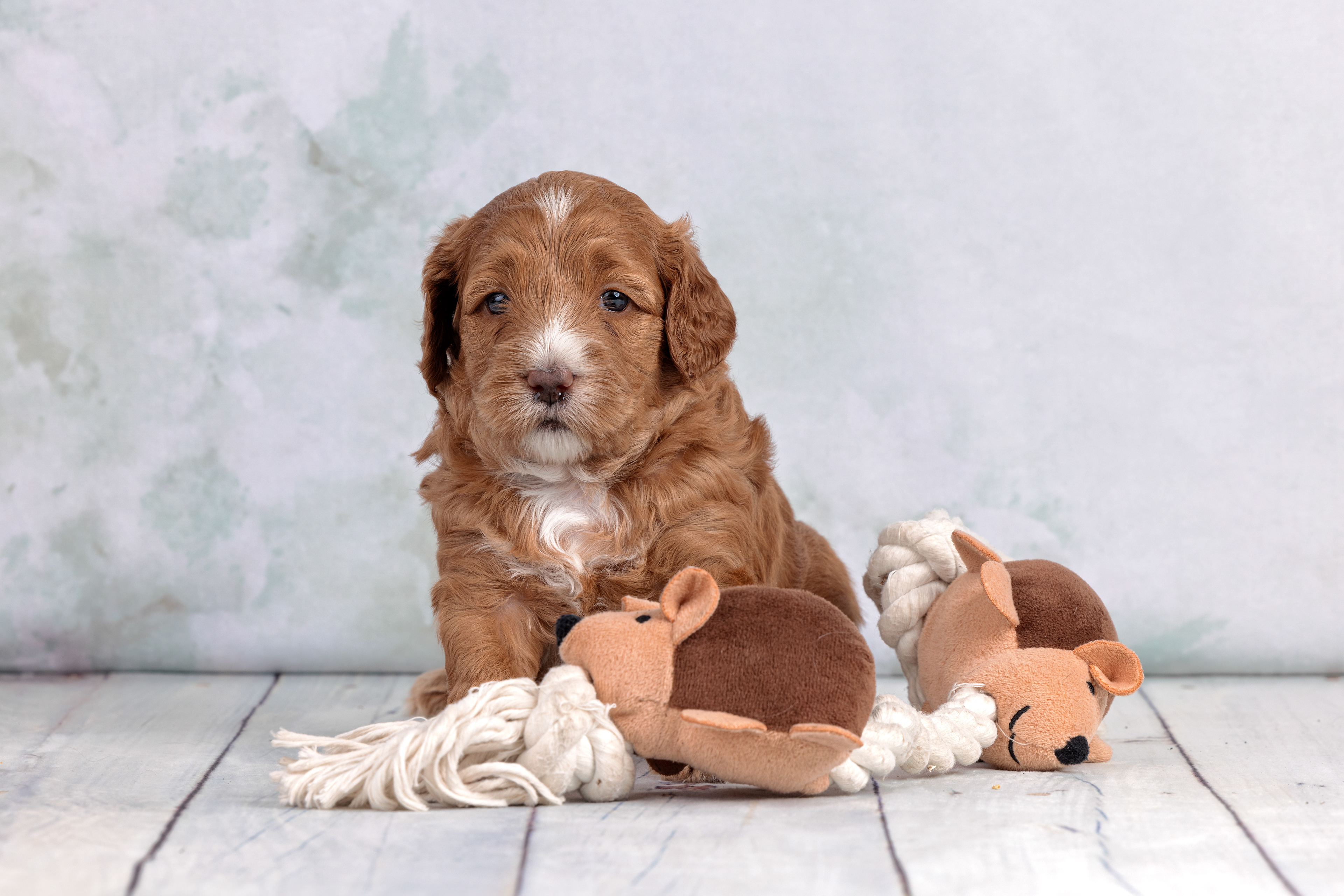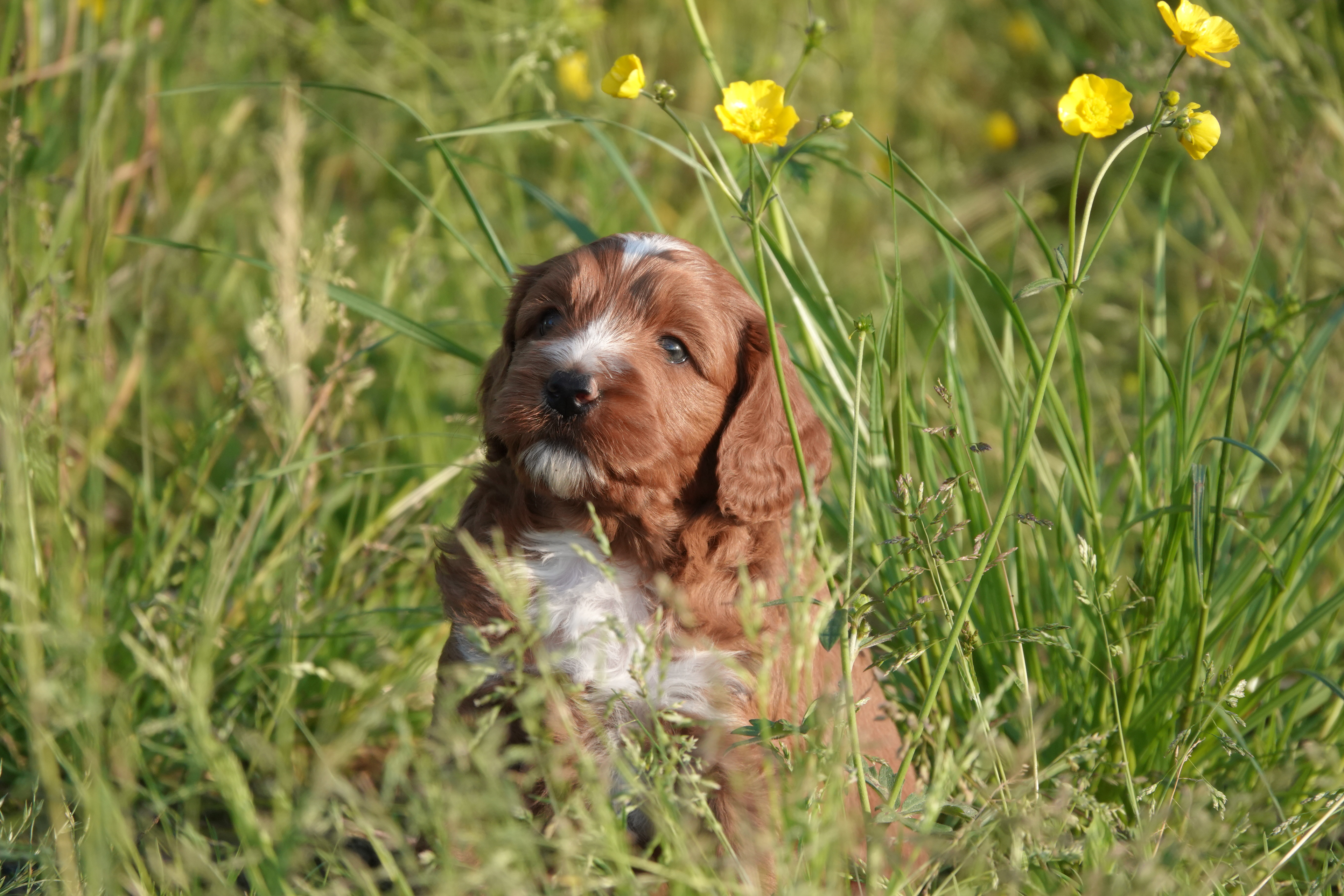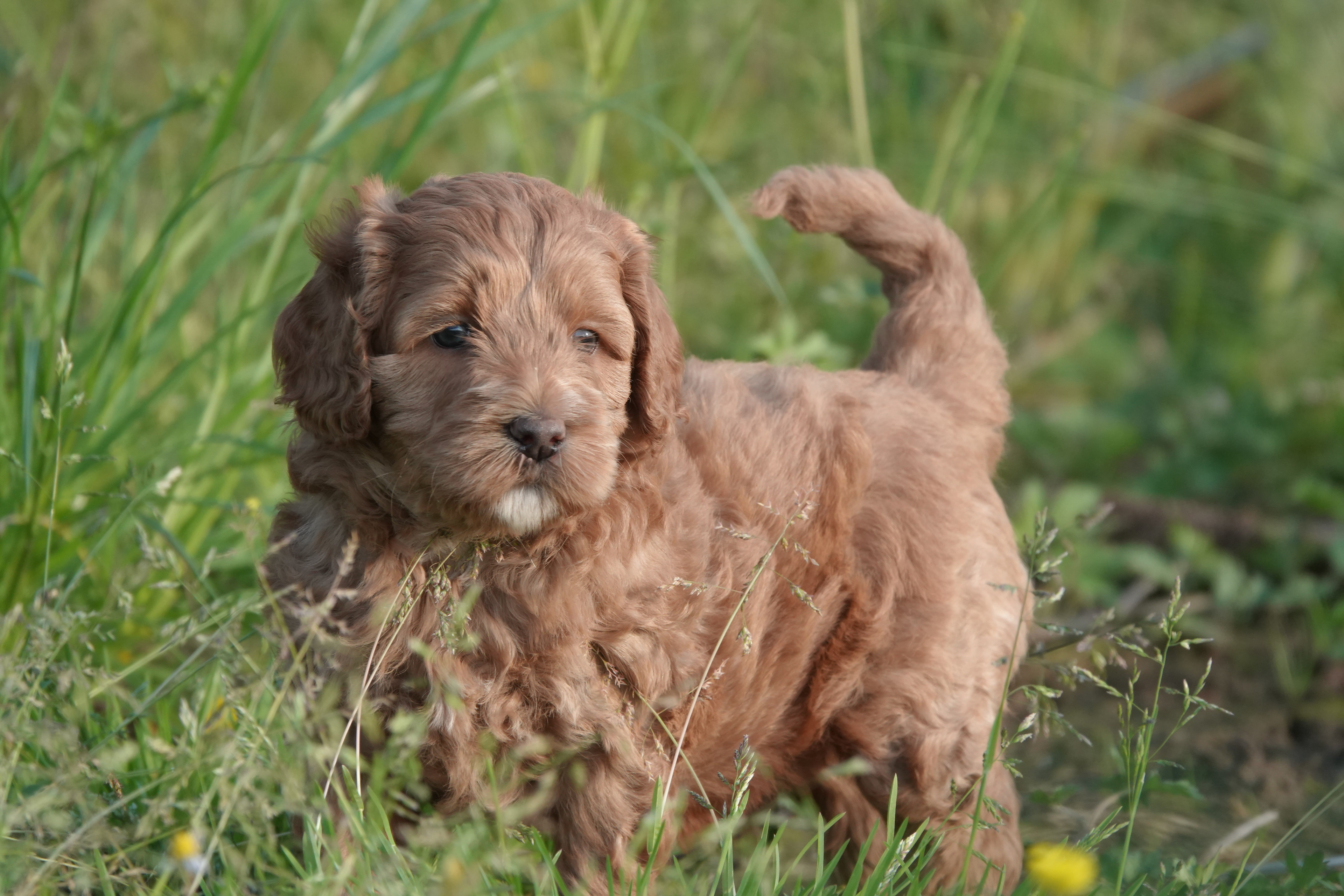 De pups van Lola en Ted zijn geboren op 21 april. Het zijn 4 pups geworden, 2 reutjes en 2 teefjes. De kleuren zijn abrikoos en rood.