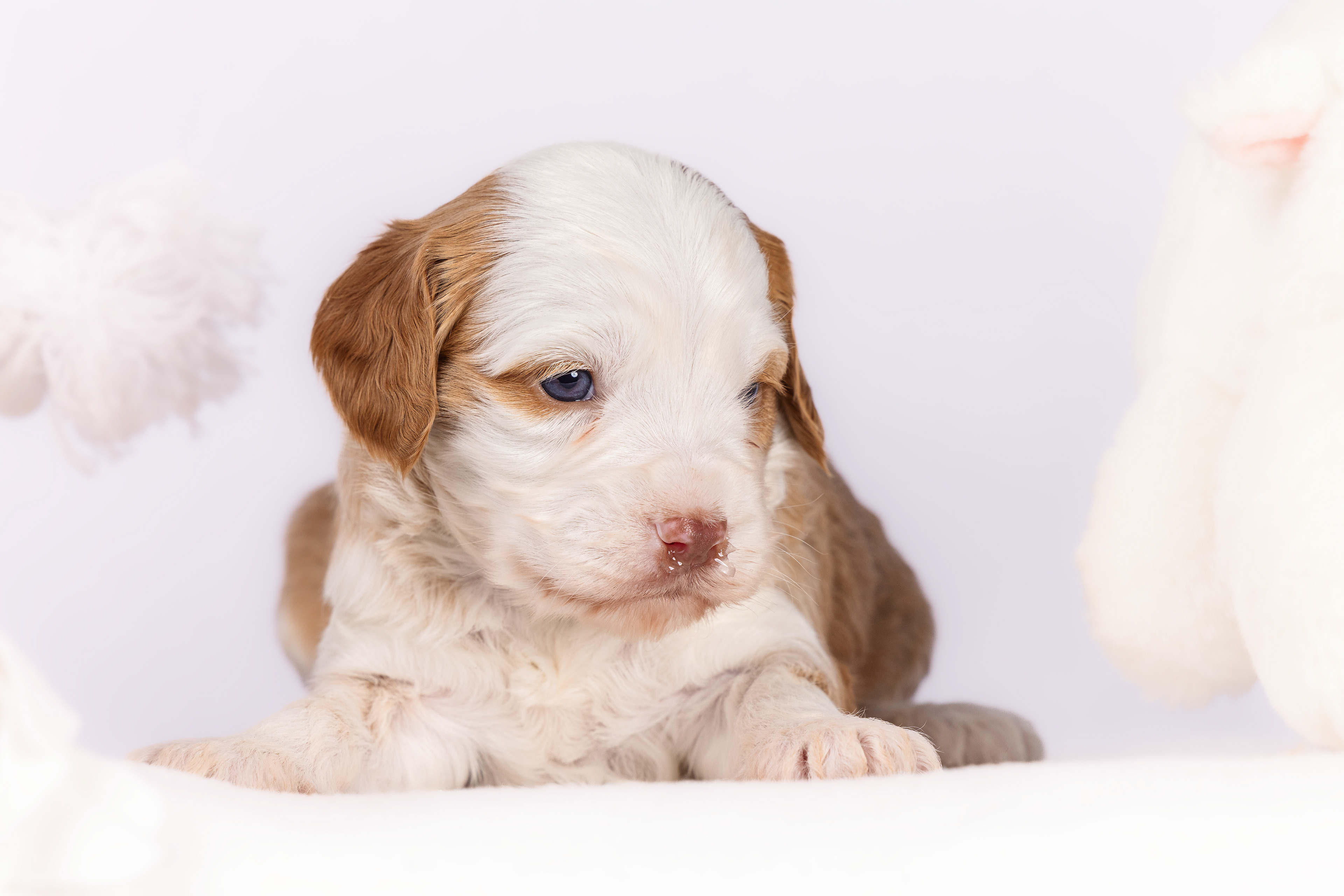 De pups van Nola (Mischa's Doodles No Lady) en Pine Lodge Blitze Frits op de leeftijd van 3 dagen oud.